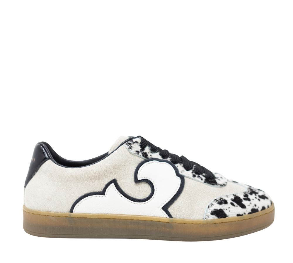 - Tomaia: suede, nappa e pelo di bovino stampato;