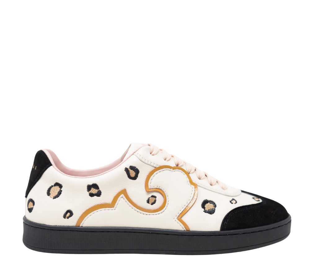 - Tomaia: nappa con ricamo a macchia di leopardo e camoscio;