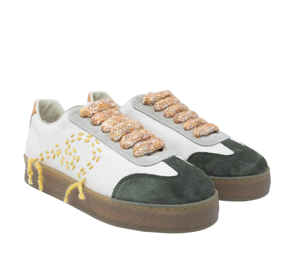 La suola alta in para extralight regala slancio e leggerezza, trasformando dettagli artigianali in un gesto di stile quotidiano.
