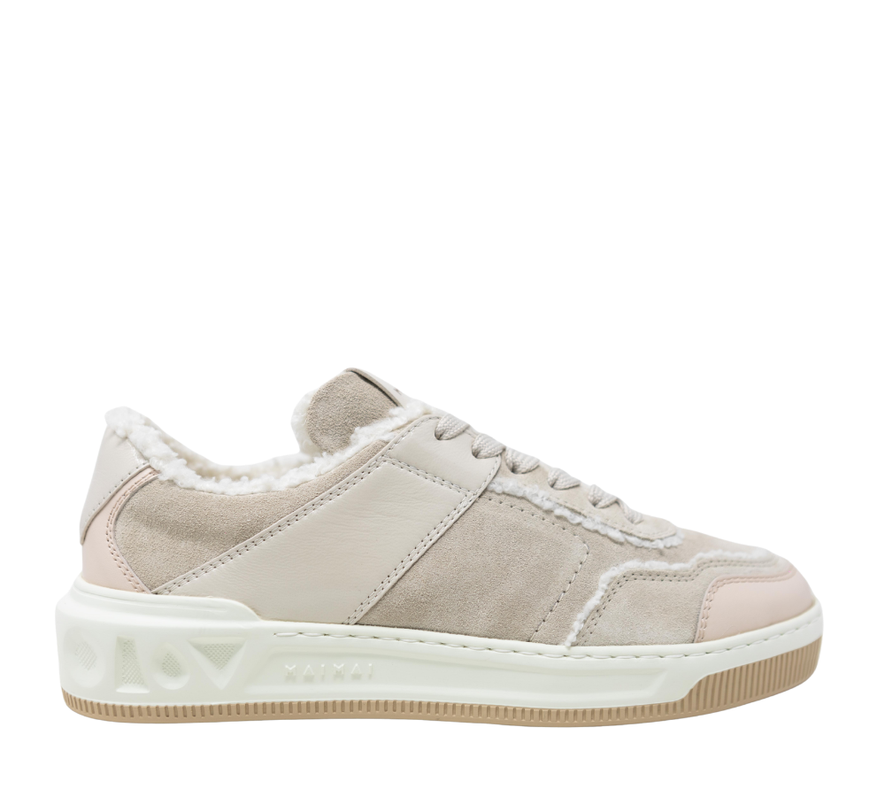 Realizzata in suede pregiato con fodera in eco montone, avvolge il piede con calore e leggerezza. Lo shirling sulla tomaia lascia intravedere il montoncino dalle cuciture, creando un dettaglio unico e raffinato che gioca con texture e volumi.