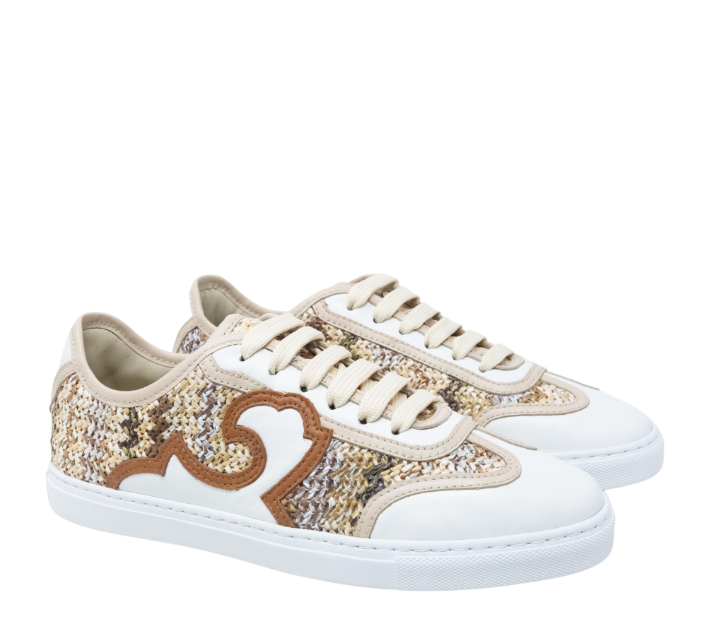 Resort è la sneaker che incarna lo spirito delle vacanze estive. Realizzata in raffia con motivi colorati, questa scarpa evoca un’atmosfera solare e chic, perfetta per chi sogna viaggi e relax nei migliori resort. Dallo stile elegante e contemporaneo, la sneaker Resort è un’ode alla stagione estiva, ideale per aggiungere un tocco di freschezza e raffinatezza ai tuoi look estivi, sia in vacanza che in città.