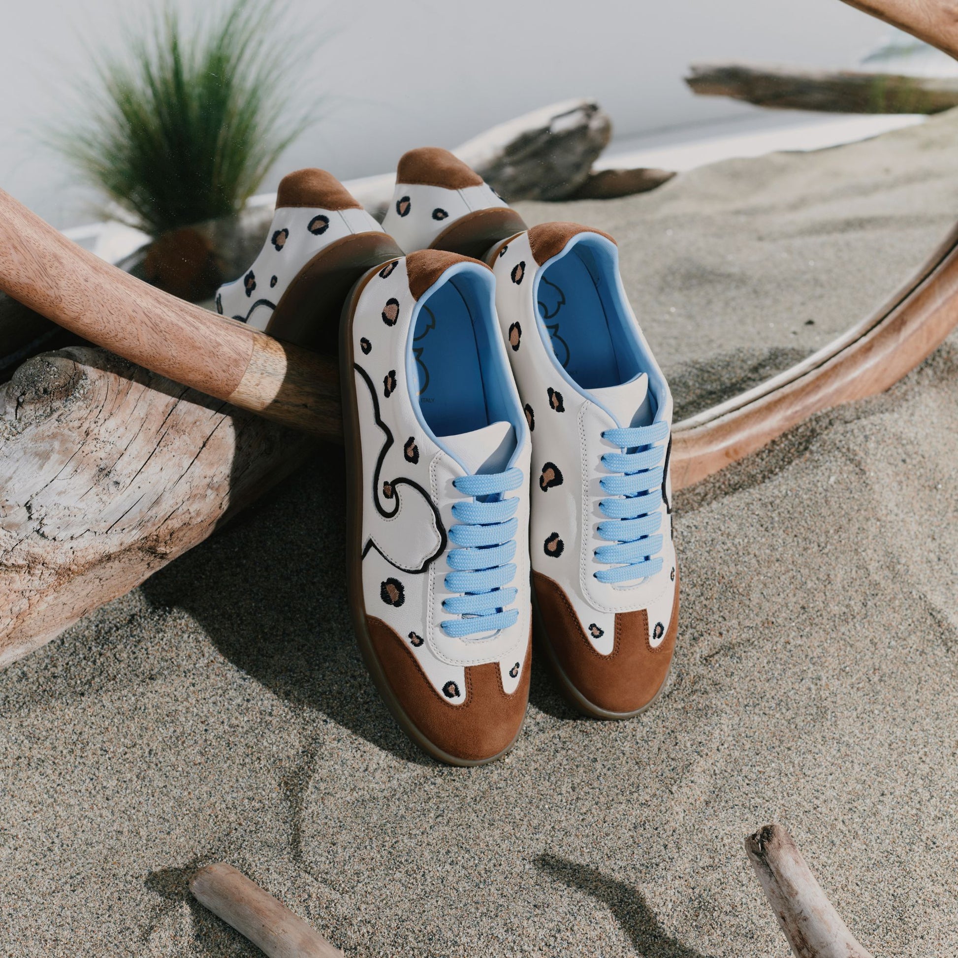 - Tomaia: nappa con ricamo a macchia di leopardo e camoscio;