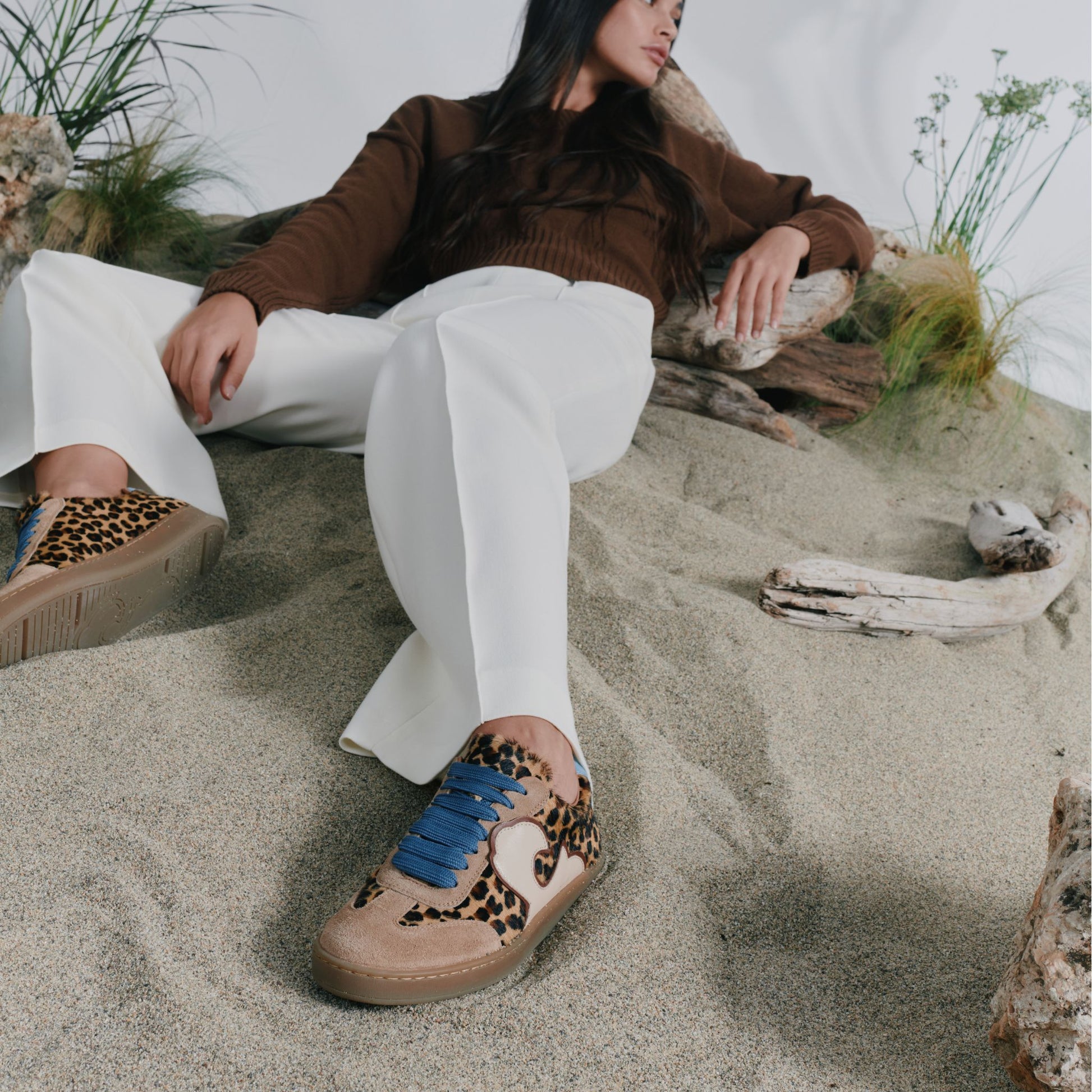 - Tomaia: suede, nappa e pelo di bovino stampato;